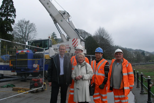 Local MP, Tim Farron, visited the site in Grange-over-Sands where construction has begun on reinstating the long awaited Clare Lane Bridge.